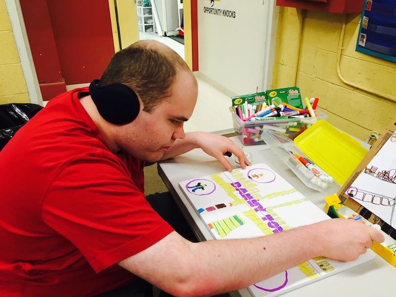 Coach Kim and Danny have been very busy planning and preparing Danny’s peer-led planning activity, “Danny Town” board game. Ā For the past three weeks they have been working hard on designing the “Danny Town” game board. Ā Danny also hand crafted and painted the characters for his board game that are made up of an airplane, car, boat, and train. Ā Next week they will create riddles that will be used to navigate Danny’s characters through “Danny Town”. Ā Check out the pictures of what they worked on. Ā Kim and Danny can’t wait to lead the rest of the Warriors through making their own board game in the next few months.