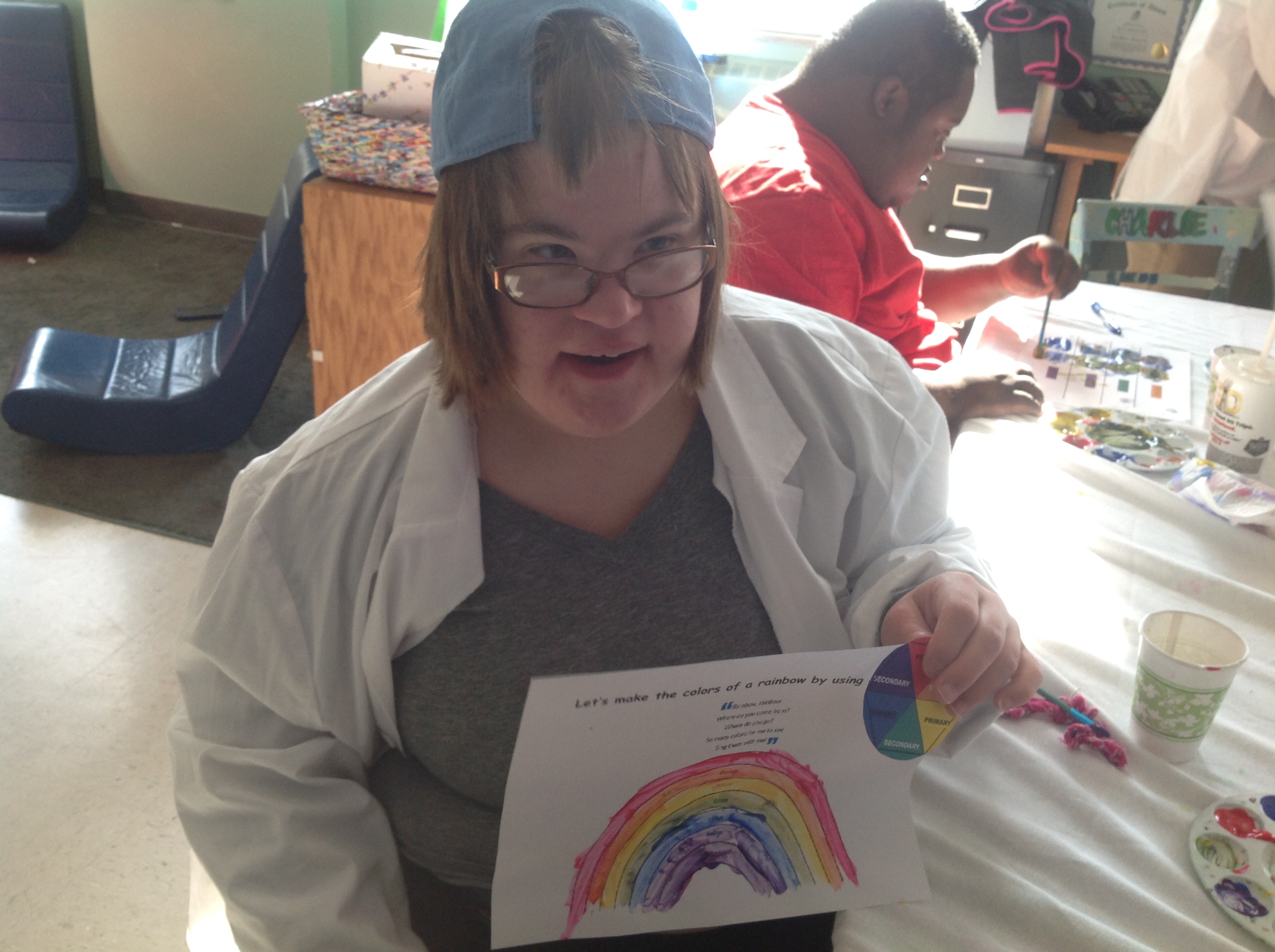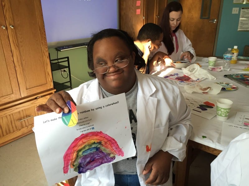 This week in Life Shop’s Science Club Warriors learned how to make the colors of the rainbow by using a color wheel. They started out with the primary colors, blue, red, and yellow and mixed them to make the colors orange, green, violet, and indigo. It was really awesome watching the Warriors determine how to make a color by using the color wheel. They did a great job!