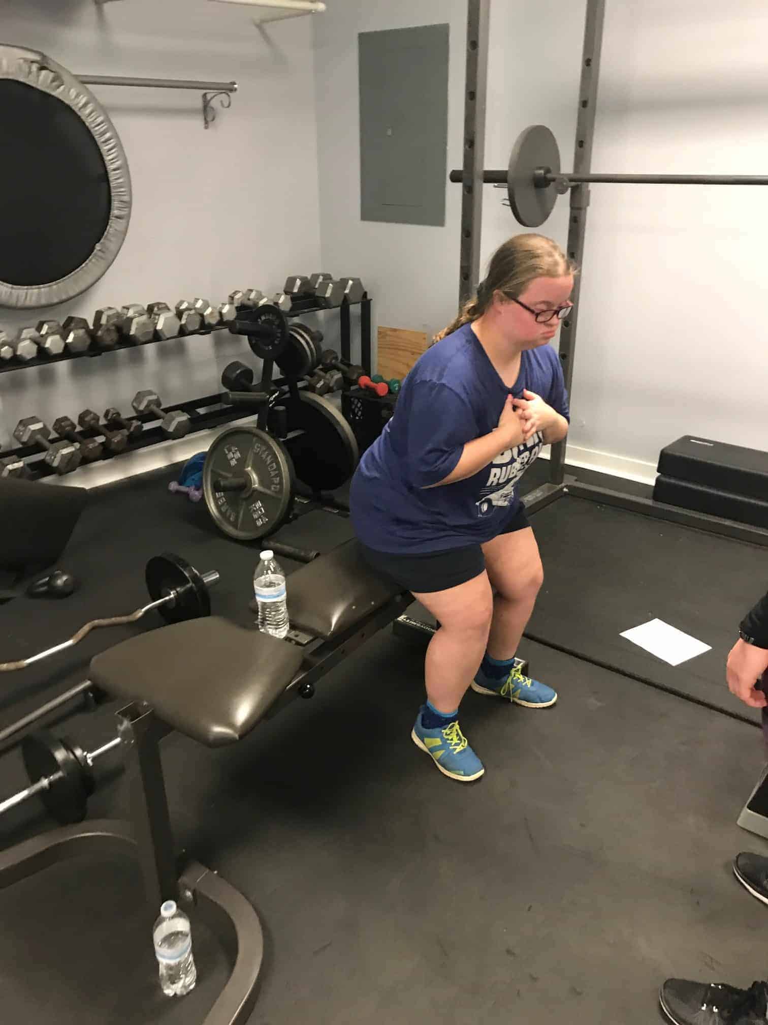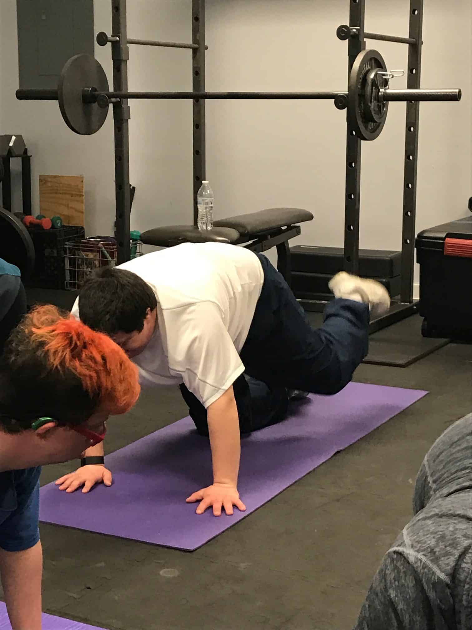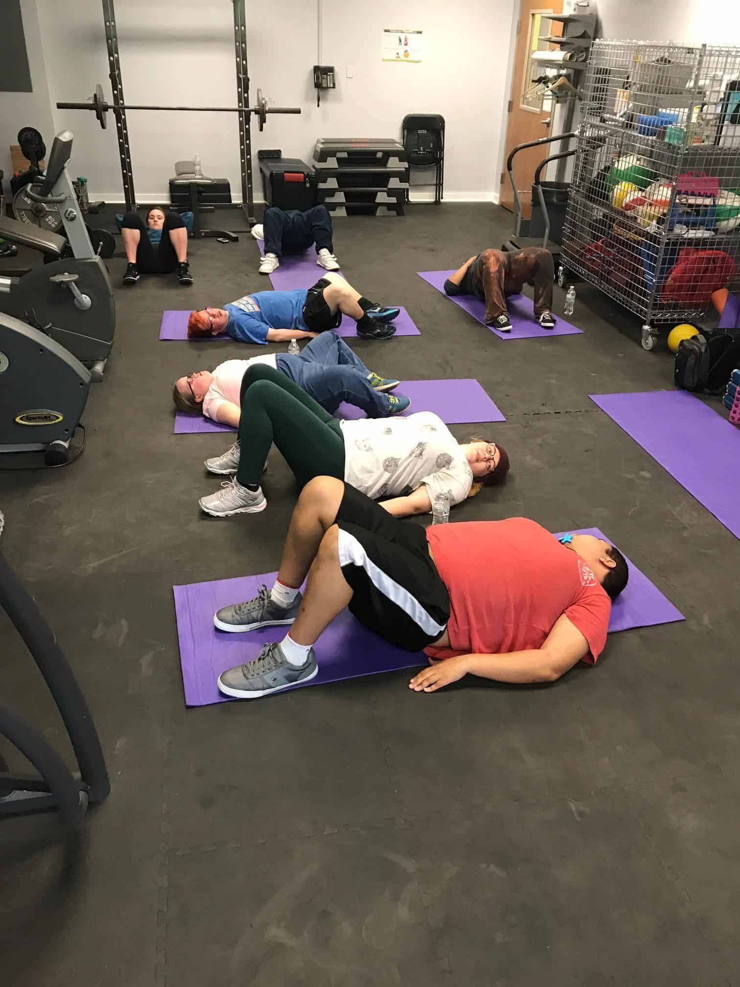 Warriors sweated it out in the fitness room for the exercise portion of this sessions Workout Warriors! As always we started with a group warm up before starting our 30 minutes of moderate intensity exercises.