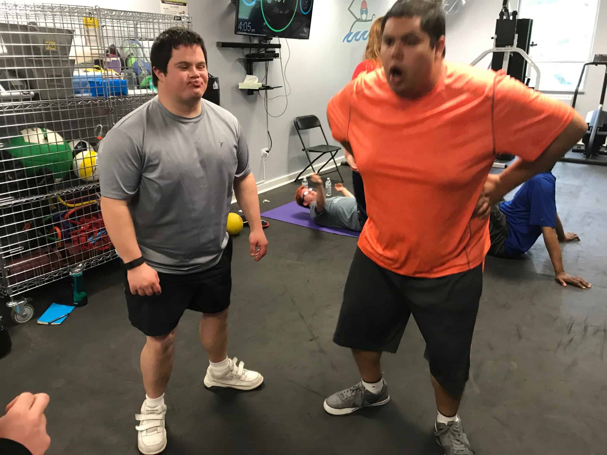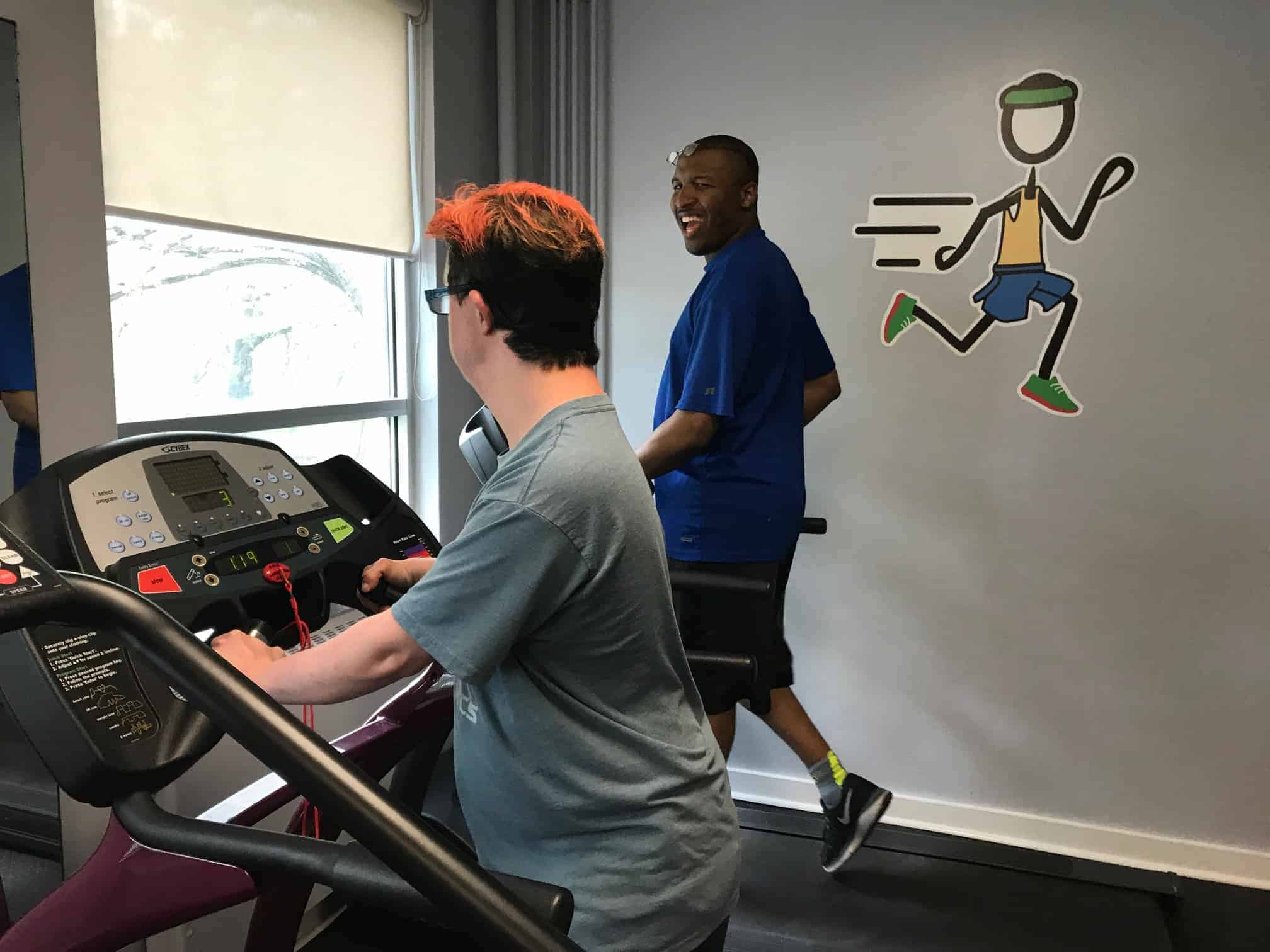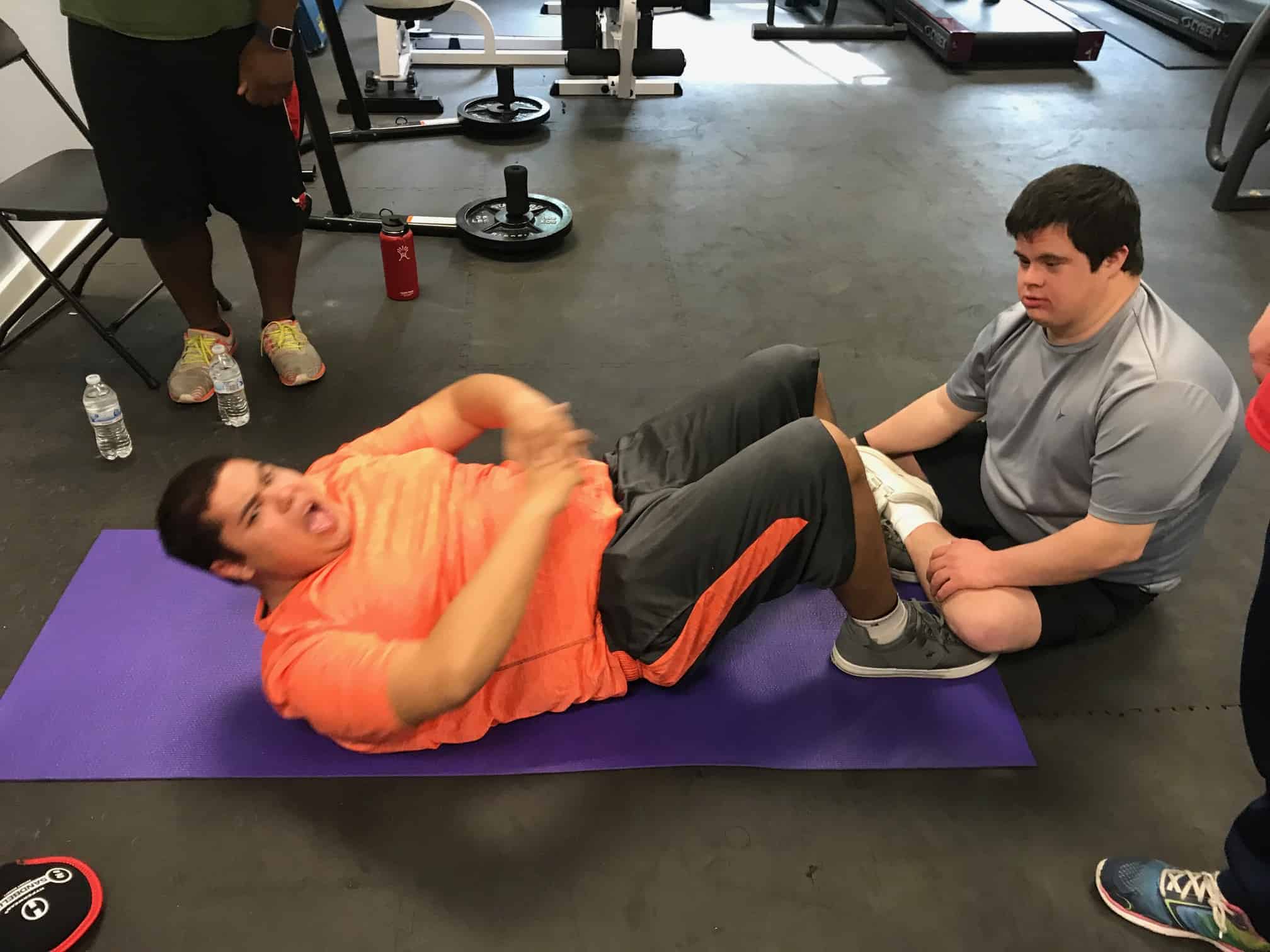 Warriors sweated it out in the fitness room for the exercise portion of this sessions Workout Warriors! As always we started with a group warm up before starting our 30 minutes of moderate intensity exercises.