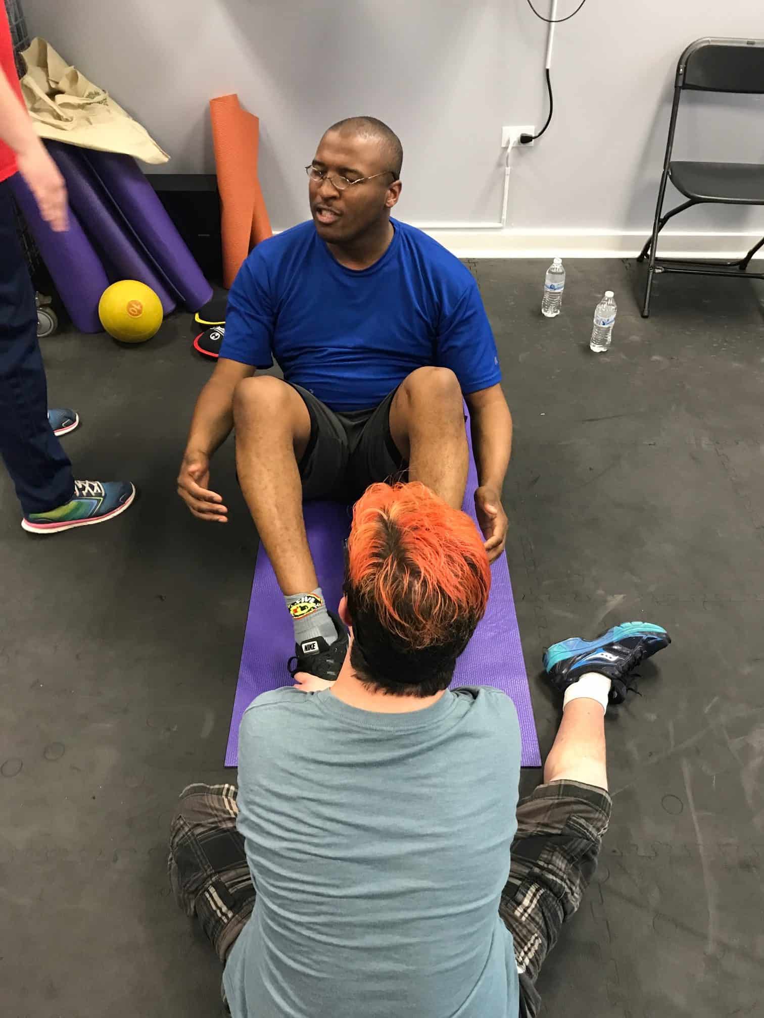 Week two we did a circuit training including using the treadmill, sit to stands, running in place, jumping jacks (LOTS of jumping jacks!!), sit ups, and boxing!