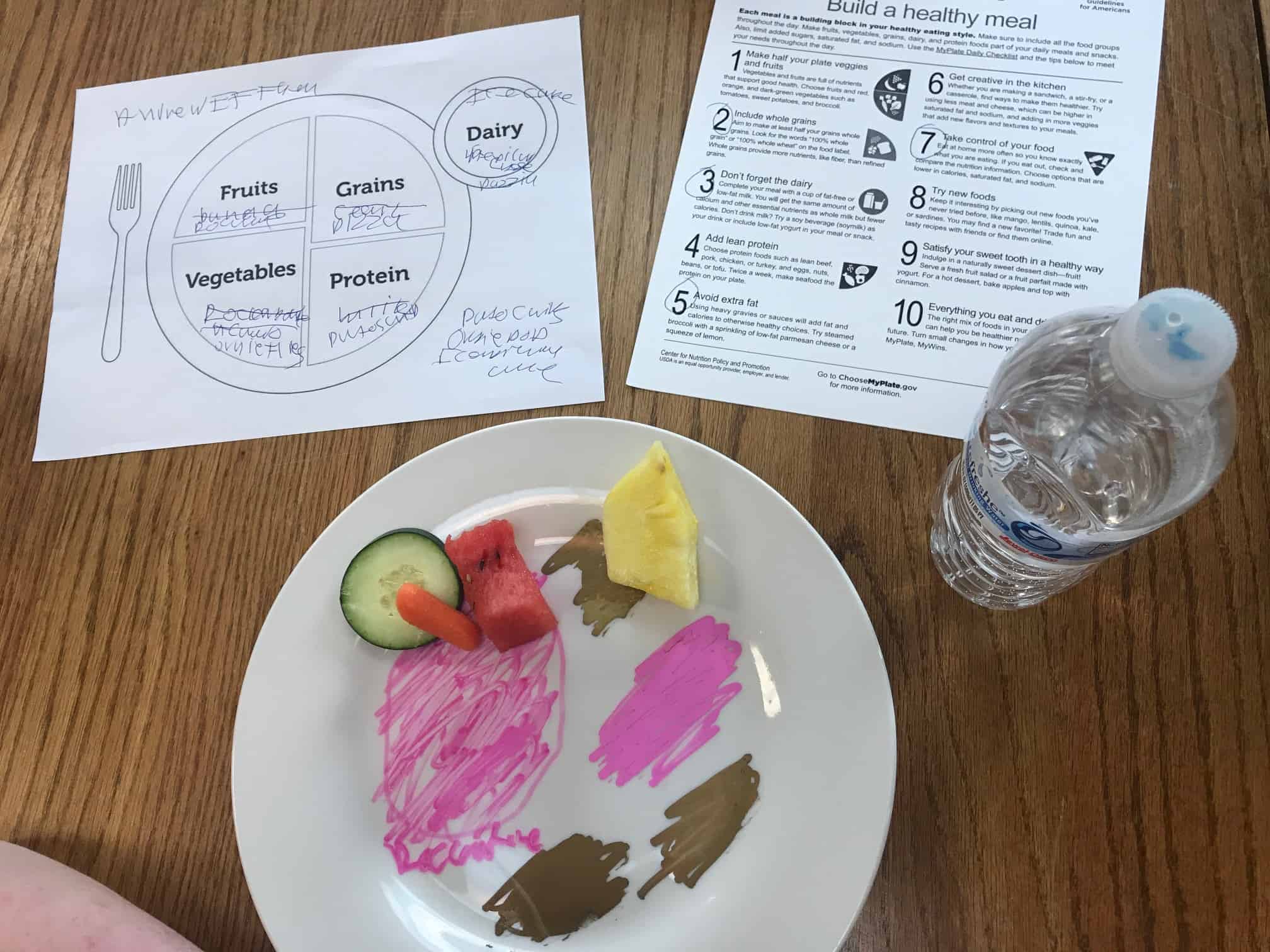 It’s recommended to make half your plates fruit and vegetables so we taste tested pineapple, watermelon, cucumber, and carrots. After learning about what was missing on our plates (and what we should eat in moderation!) we rebuilt our dream meals to incorporate the healthier options and made sure not to skip the fruits and veggies!