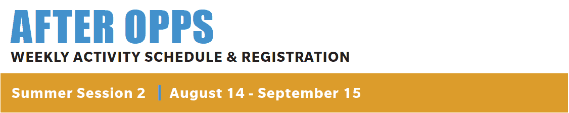 Registration for Summer Session 2Ā is now open! See descriptions of activities being offered this session below. Please use the form on this page to register for After Opps programs. Any questions or concerns may be directed to Steve Compere, Program Director of After Opps at steve@opportunityknocksnow.org.