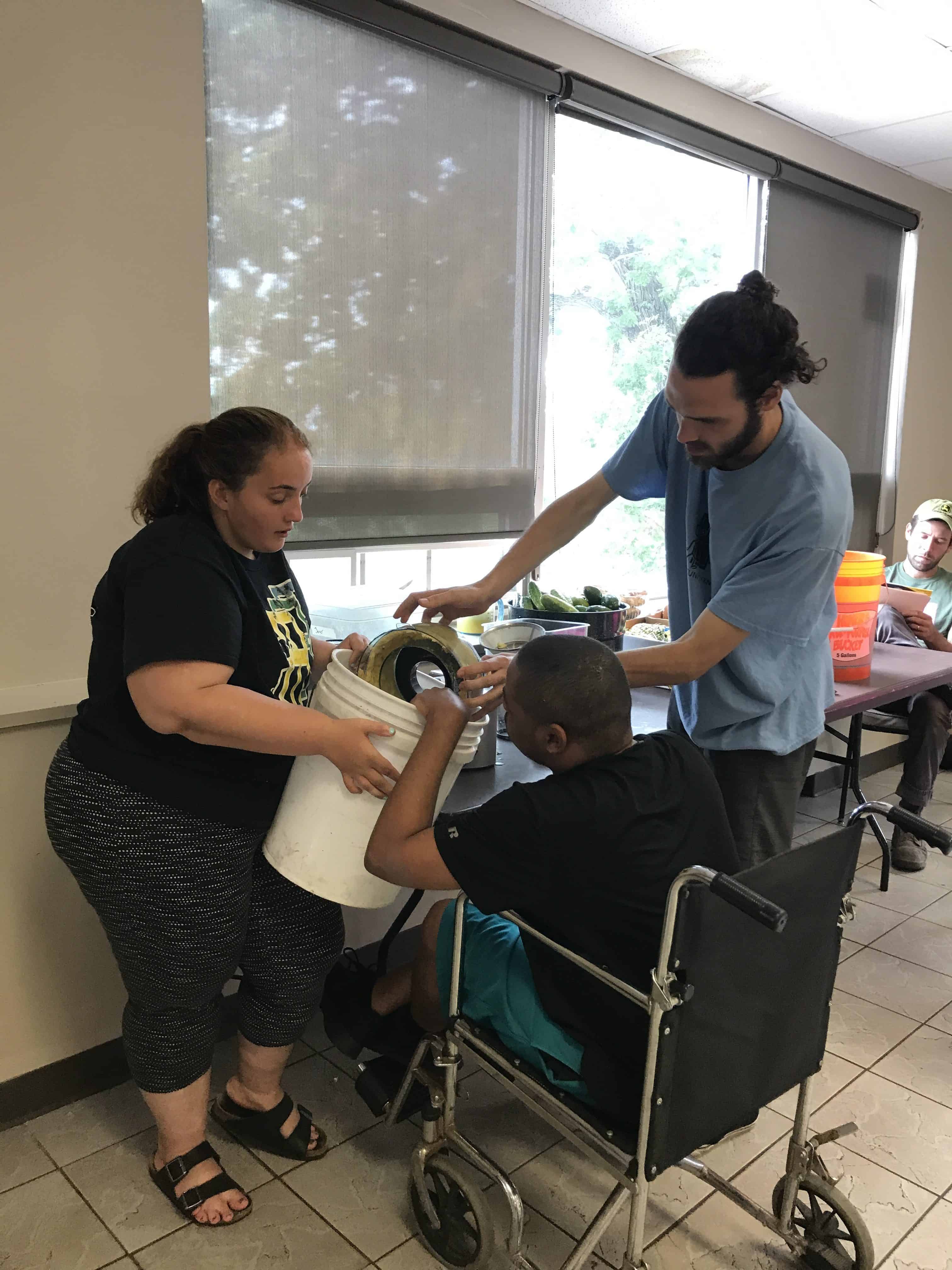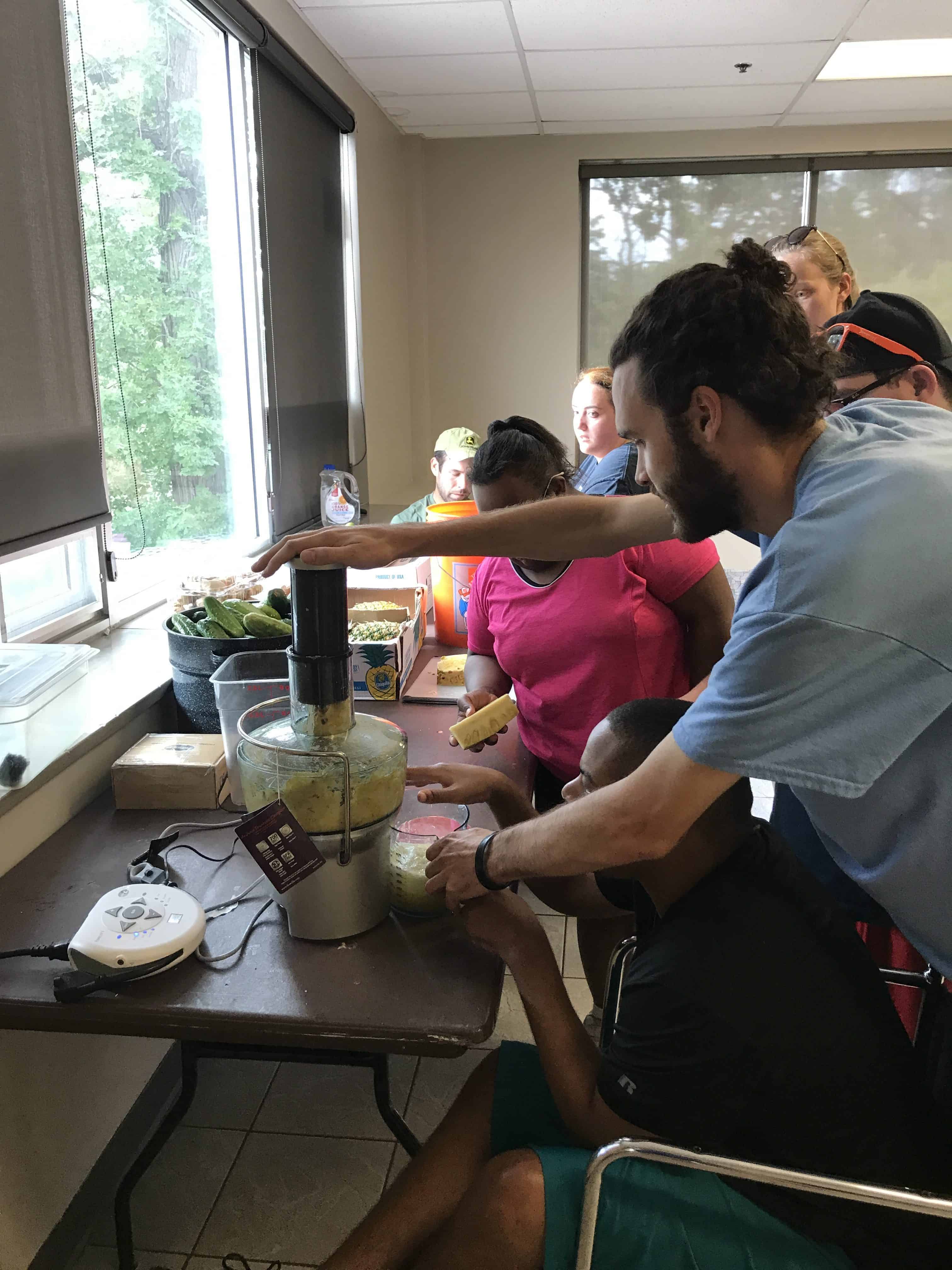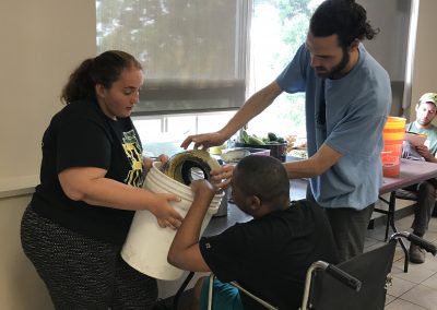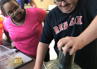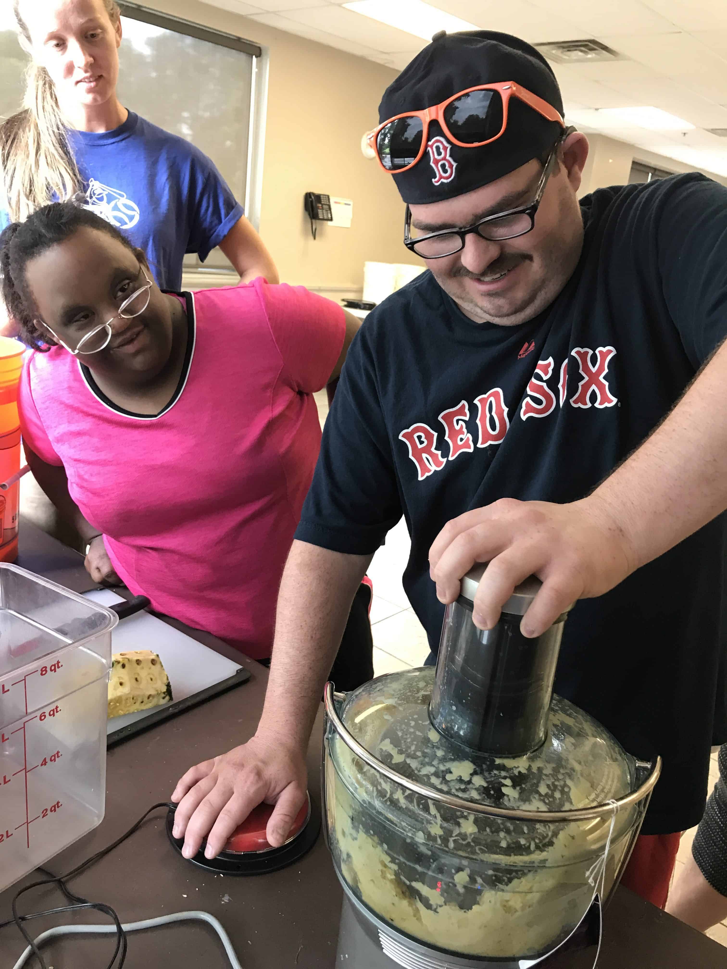 Over the summer the Life Shop was approved through the Illinois Assistive Technology Program to receive a five-week loan of a small motor  switch and adapter to use in cooking.  Warrior Kris with the help of his Life Coaches used the switch to make BBQ sauce for lunch that day.  Kris did an awesome job! Check out the video of Kris making BBQ using the switch.  We also used the switch on a hot summers day to make all natural smoothies!  Thanks IATP for loaning us this device, we hope to purchase one of our own in the near future.