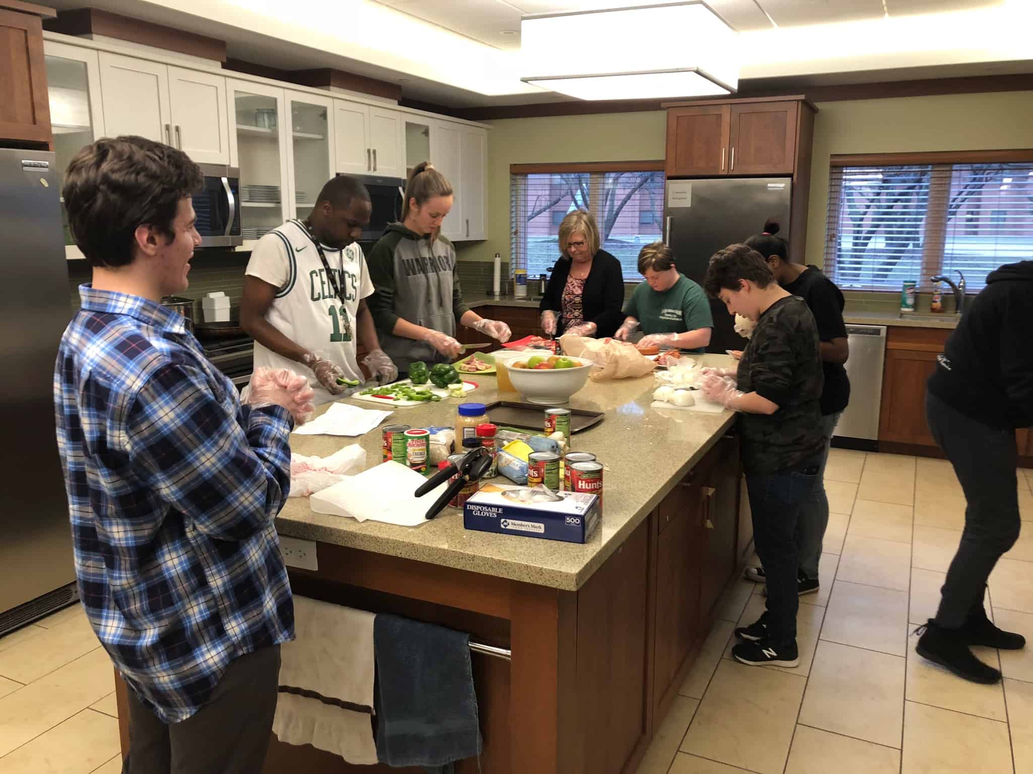 Throughout the Winter 1 session of After Opps the Warrior-driven program known as Community Opps worked to plan a delicious home-cooked meal for our friends at the Ronald McDonald House near Loyola University Medical Center. The Warriors were in charge of planning the menu and cooking the meal which consisted of Jambalaya, Fruit Salad, and Chocolate Chip Cookies. In addition to cooking, we helped decorate and make cards for Valentine’s Day.