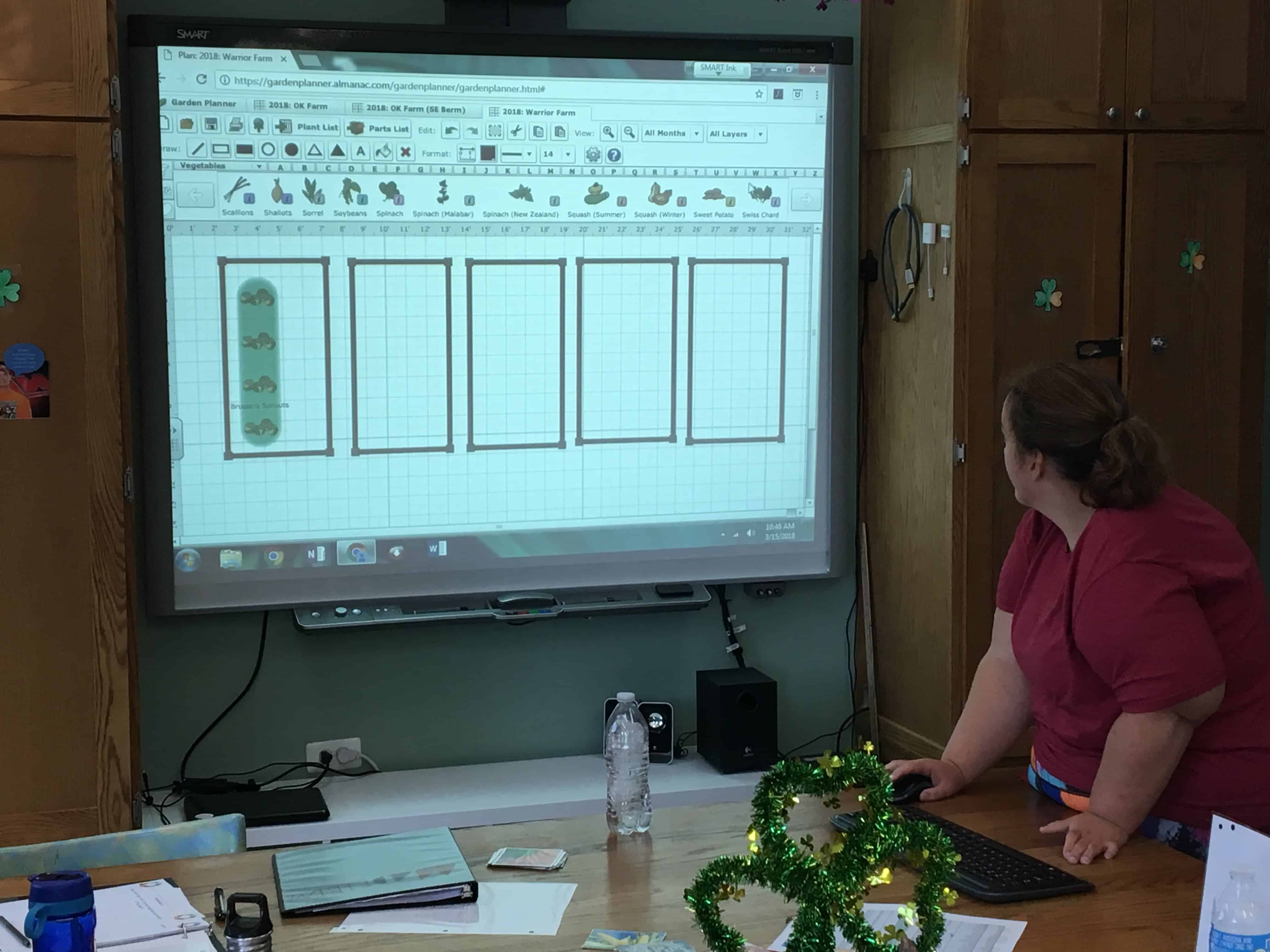 Opportunity Knocks uses the Old Farmers Almanac Garden Planner to help us plan our farm. This application allows us to visualize what we can plant on the farm and it even gives you suggestions on what can be planted together, how many rows you should plant, and the proper spacing for each crop. Warriors tested this out in the Growers School and put some of what they have learned to practice! Many people think that farmers have nothing to do in the winter time, but it is never to early to start planning for the upcoming season!