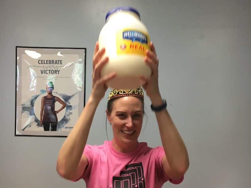 This After Opps session had a bittersweet end as we gave a warm send-off to OK Health & Wellness director Jeni Pierce, who is moving to California. On the final day of the session, we had a Jeni-themed circuit workout, played “pin the warrior wellness sticker on Jeni,” played Jeni-themed Fear Factor, enjoyed a dinner of her favorite foods, and exchanged gifts and memories. Jeni has been a passionate and dedicated member of the OK team since 2010 and was invaluable in building a strong culture of Wellness within our organization. We will miss her greatly butĀ wish her all the best! Thanks for everything, Jeni!Warrior Quotes: