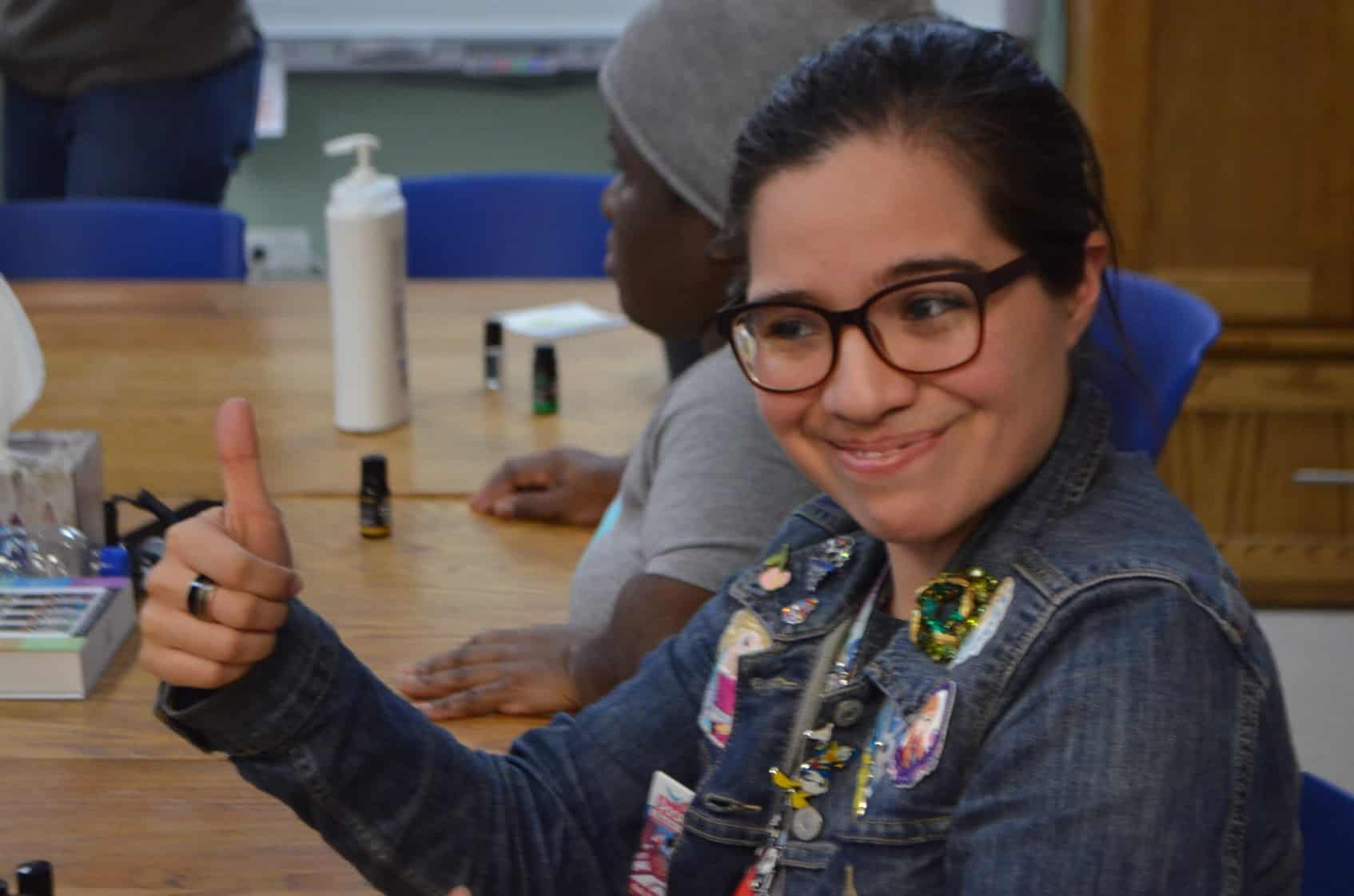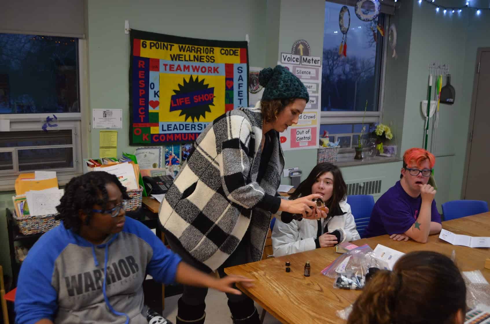 In theĀ BotanicsĀ group, Warriors learned about essential oils with Brynn Medlar from Oak Park Oils. We made rollers to take home with a “Happy” oil blend and a “balanced and calm” oil blend. Thanks Brynn! We also did a short yoga and meditation session with essential oils. It was very relaxing. We also made our own body lotions and bath salts to take home.