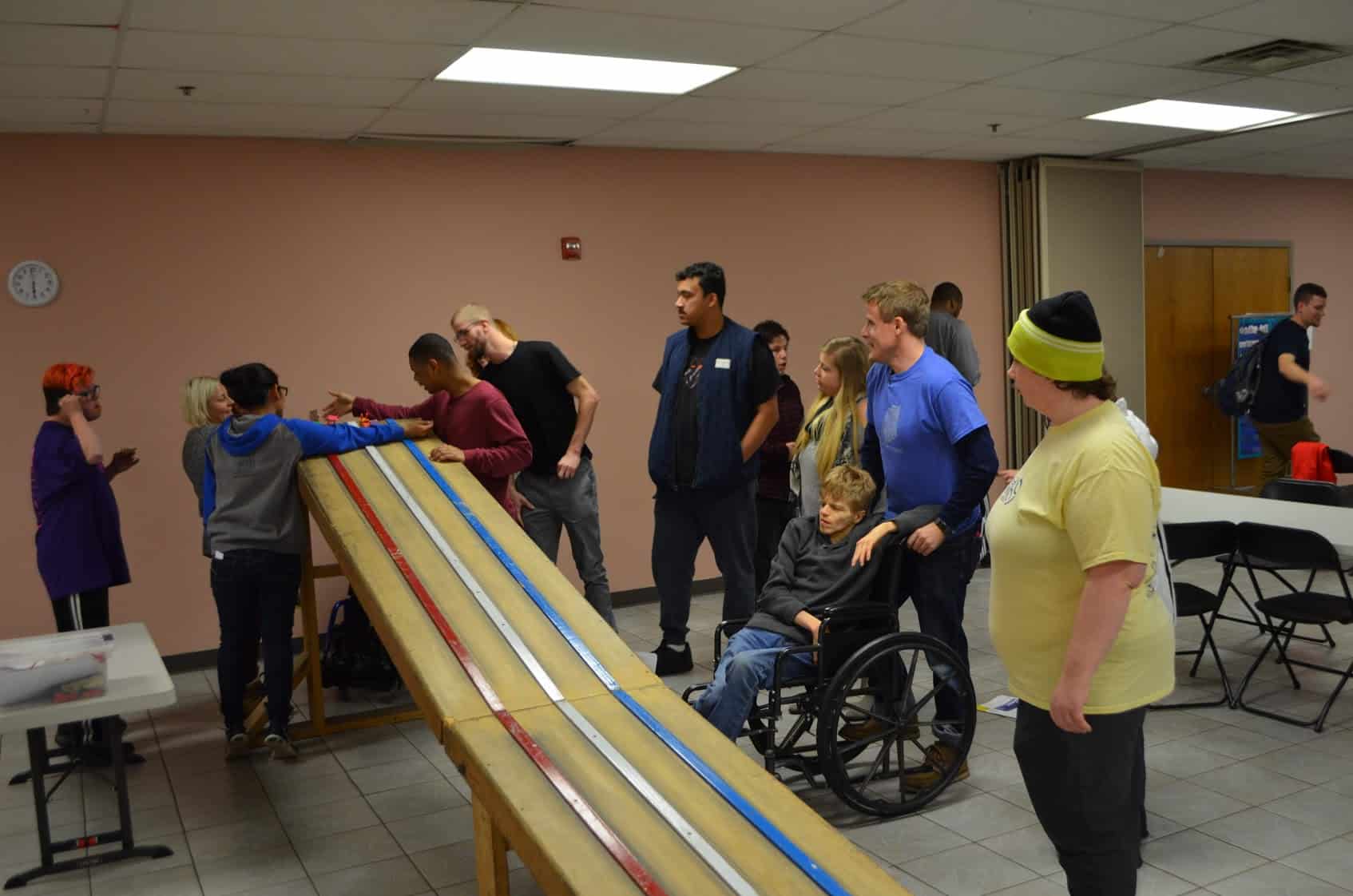 Our Knocksgiving event started with the regularly scheduled Friday programs of Botanics, Basketball, Night on the Town, and the Stewpendous Cooking group. Later in the afternoon, Warrior families got treated to a delicious meal, some Warrior videos, a special stand-up comedy set by Nicholas Sawyer, and Pinewood Derby races! Thanks to all who came out for the fun-filled celebration!