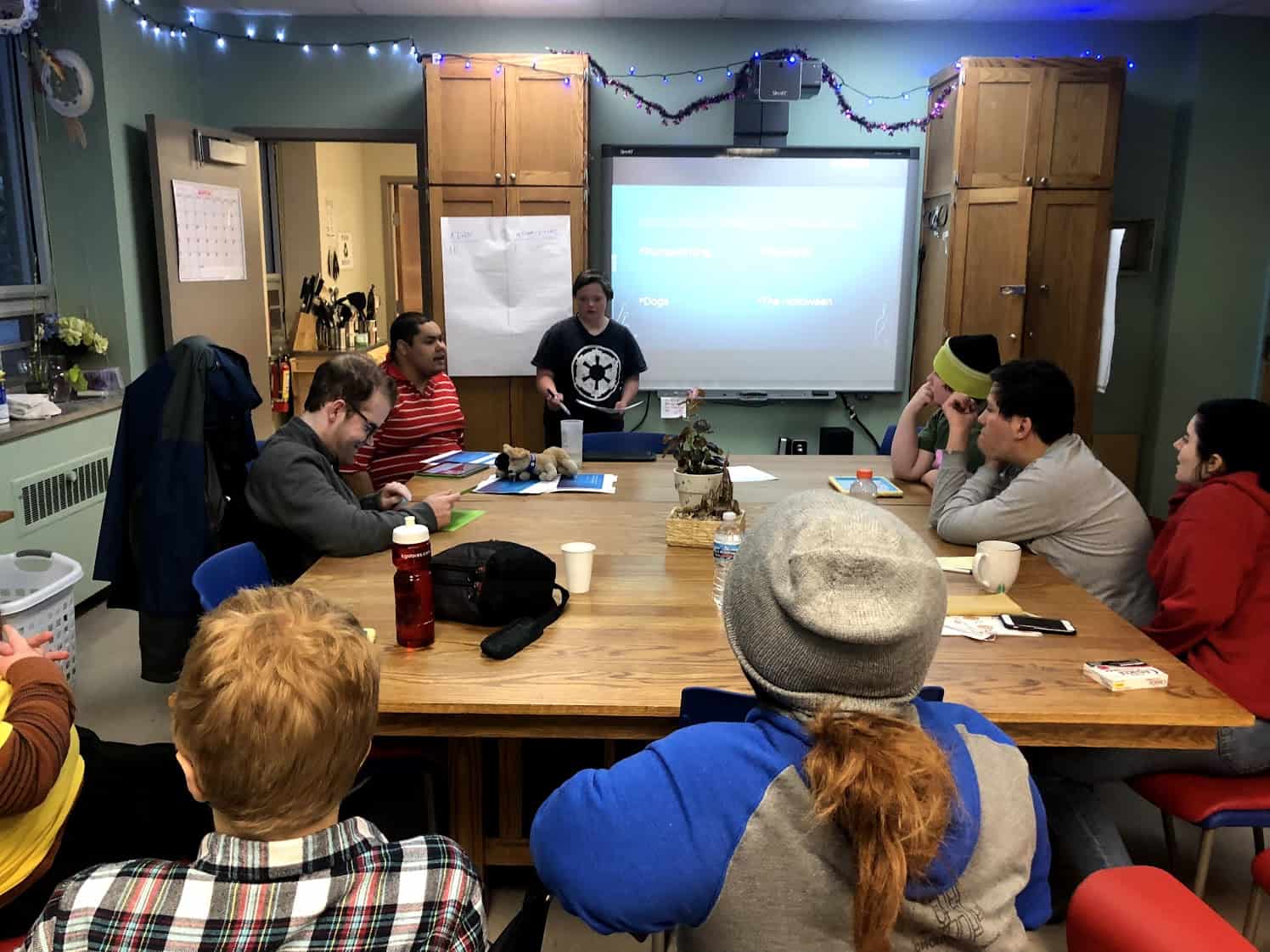 The peer-ledĀ Holiday Movie TriviaĀ group was planned and led by Georgia and Andre. They did Jeopardy/Family Feud styles of trivia about different holiday movies such as Elf, Home Alone, Nightmare Before Christmas and more!