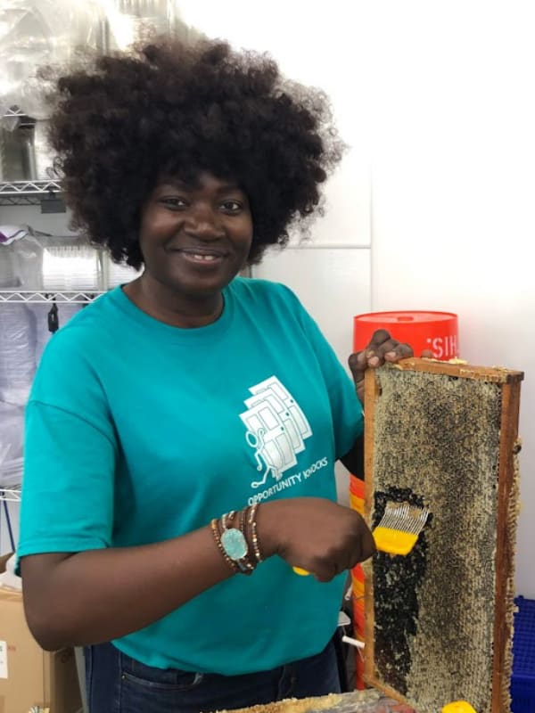 Knockout Farm received its first batch of Italian, varroa mite resistant bees. We worked with the ReUse Depot to strategize placement for the 10,500 busy bees installed in May. Bees will not produce honey during the first year, however, in the following season Warriors may be able to harvest our first small jars of honey to taste and wax to experiment with value-added products for the farm such as lip balm, candles, soaps, etc.