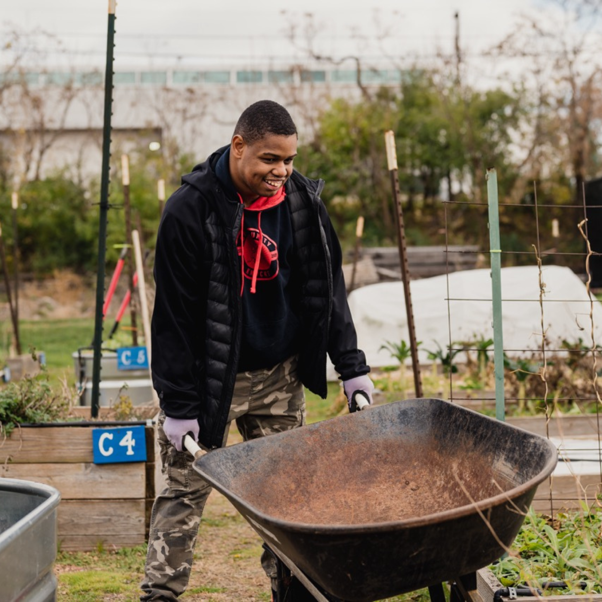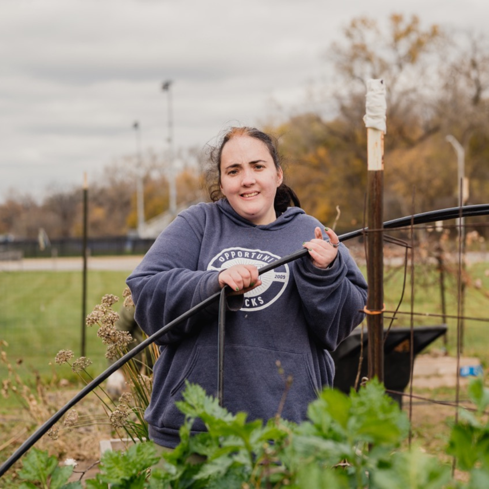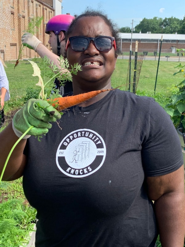Jonece began with Opportunity Knocks as a volunteer referred through ‘The Answer Inc program located in Forest Park, IL. Her effervescent personality and heart for others has served Opportunity Knocks diligently for nine years and counting. In 2019, Jonece became the first official Warrior employee of the Knockout Farm where she is honing her skills in sustainable urban agriculture. Aside from learning to grow plants, vocational skills learned at the farm such as record keeping, beginning project management, and paying attention to details are invaluable and transferable to any work she chooses to do in the future! “I love to make people happy and feel good,” Jonece said when asked what was her favorite activity at Knockout Farm. Of all Jonece’s learned skills at Opportunity Knocks, what emanates instinctively and without measure is what she came to share with us and the world, her love for others. Jonece is currently in training to for food farm safety and sanitation and insect and pest management (IPM).