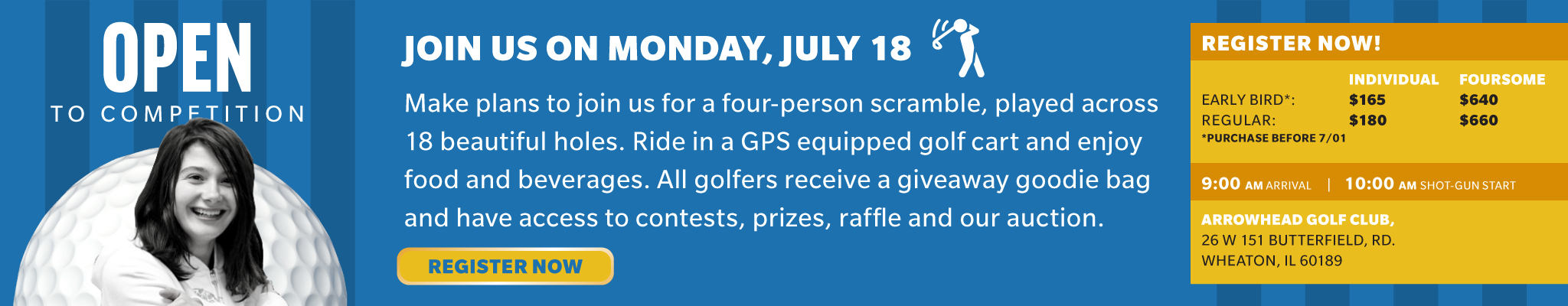 Make plans to join us for a four-person scramble, played across 18 beautiful holes. Ride in a GPS-equipped golf cart and enjoy food and beverages. All golfers receive a giveaway goodie bag and have access to contests, prizes, raffle, and our auction.