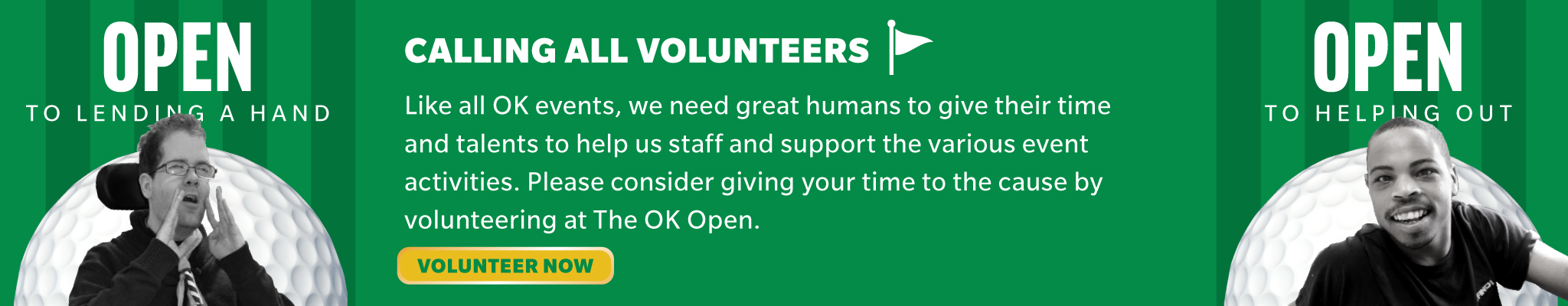 Like all OK events, we need great humans to give their time and talents to help us staff and support the various event activities. Please consider giving your time to the cause by volunteering at The OK Open.